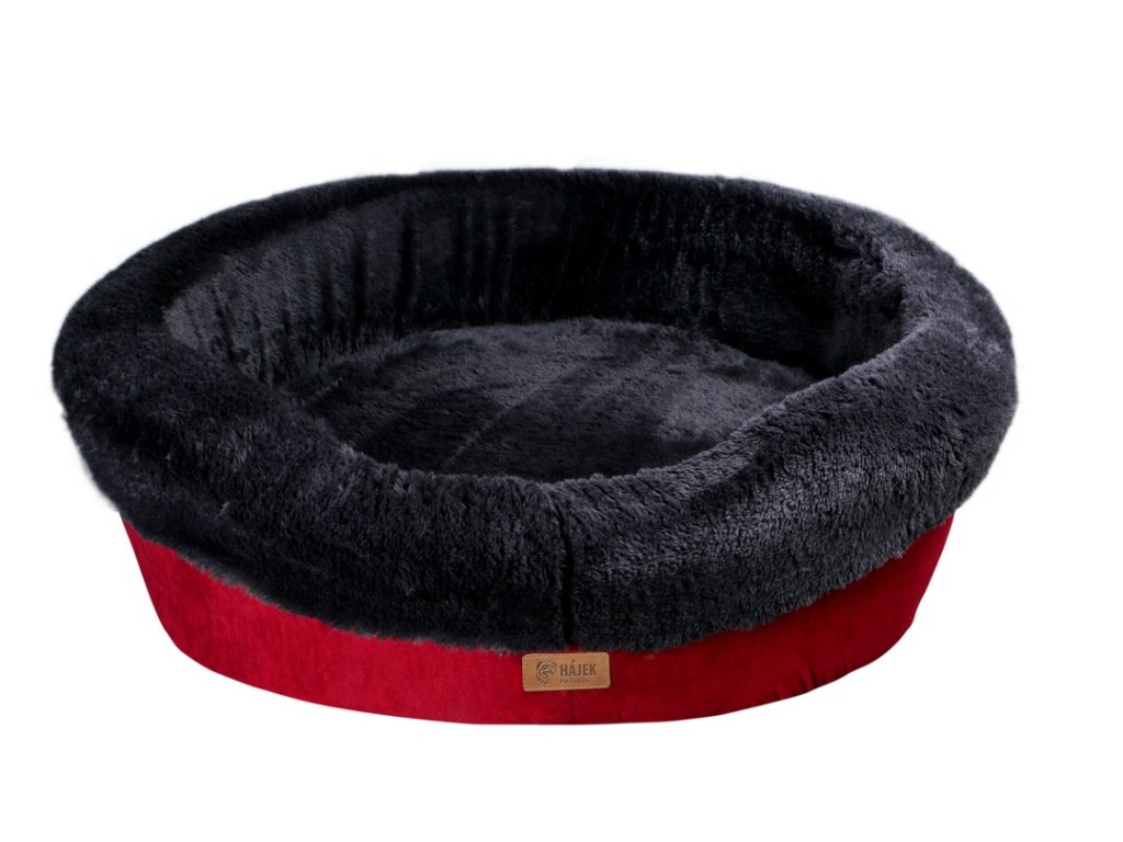 HPF Pelech DONAT M – červený/černý je pohodlný, měkký a praktický pelíšek ideální pro malé a středně velké psy. Díky tvaru „donutu“ vytváří bezpečný, útulný prostor, ve kterém se pes cítí chráněně a může nerušeně spát i odpočívat. Vyšší lem poskytuje oporu pro hlavu a zároveň psovi dodává pocit jistoty.