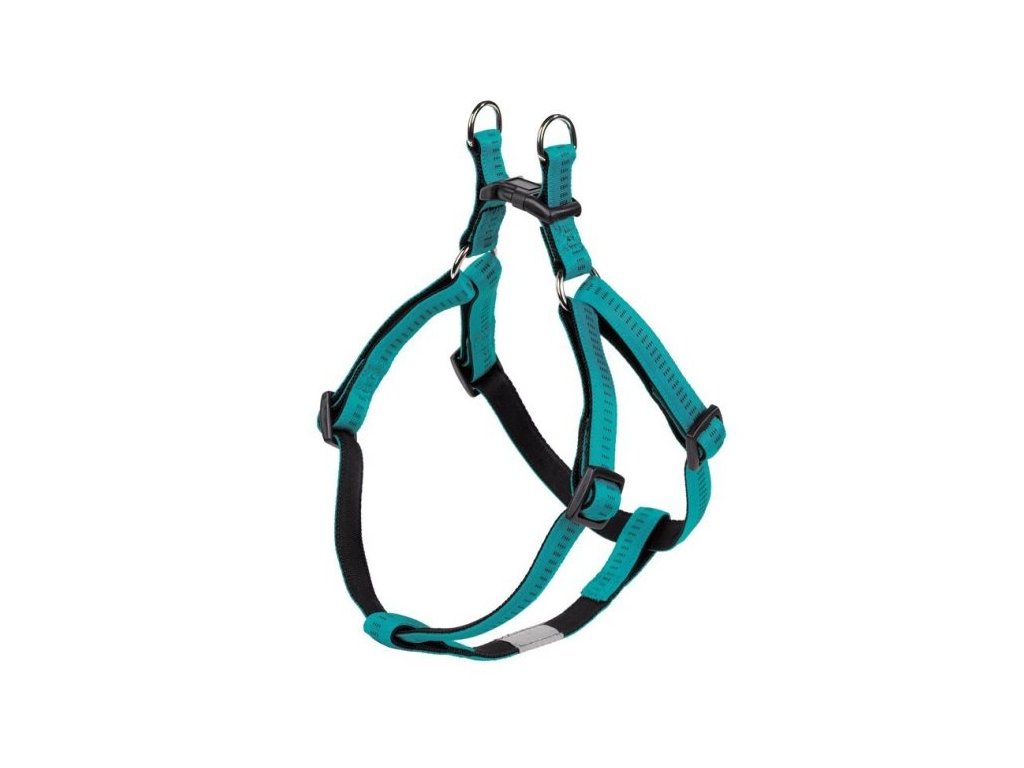 Snadné oblékání postroje ocení každý majitel, stejně jako pevná plastová spona a dvojité nerezové kroužky, které rovnoměrně rozkládají tah vodítka na obě strany. Tento systém zvyšuje stabilitu postroje a snižuje tlak na hrudník psa.