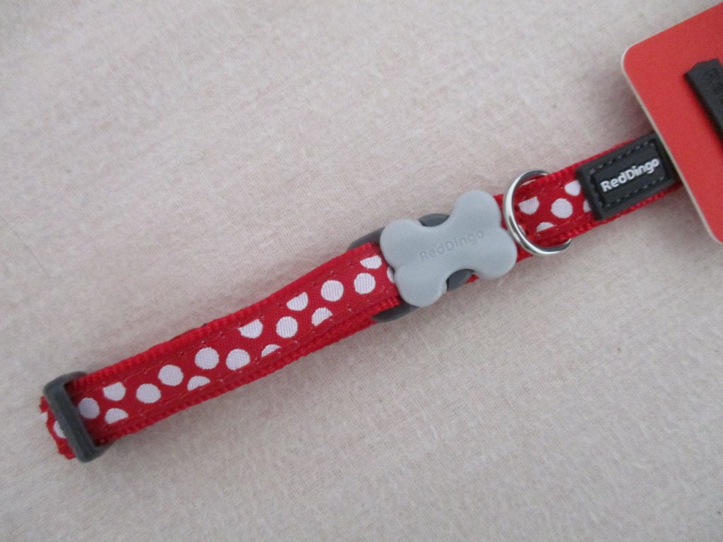 Obojek RD 12 mm x 20-32 cm - White Spots on Red