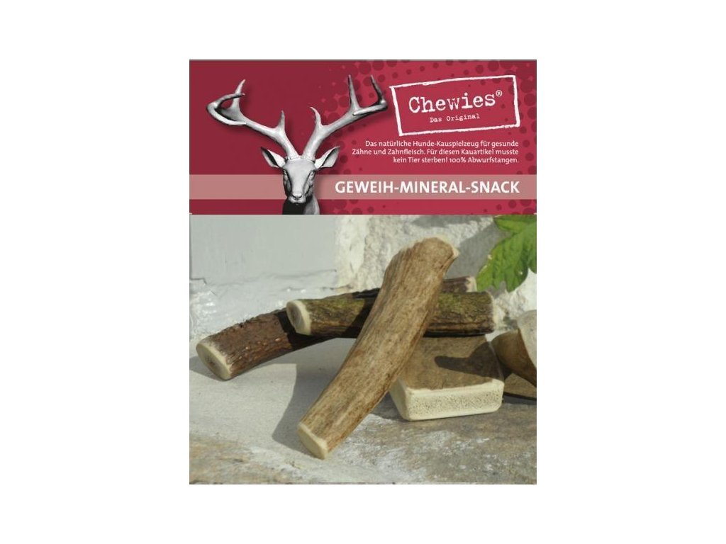 Chewies paroží s minerály jsou stoprocentně vyráběny ze shozů paroží vysoké zvěře. Jelen ztrácí paroží jednou ročně zcela přirozeným způsobem. Shozy se sbírají a ručně zpracovávají v různých velikostech. Shozené paroží se svými vlastnostmi ideálně hodí jako žvýkací hračka pro psy. Struktura je tvrdá a maximálně odolná. Je vyloučeno, aby pes paroží rozbil nebo rozkousal. Nemůže se tedy zranit, jak se například stává v případě ostrých úlomků klacků či větví. Shozené paroží je asi nejstarším pamlskem pro posílení žvýkacích svalů a čištění zubů, který vlci upřednostňují již po tisíciletí.